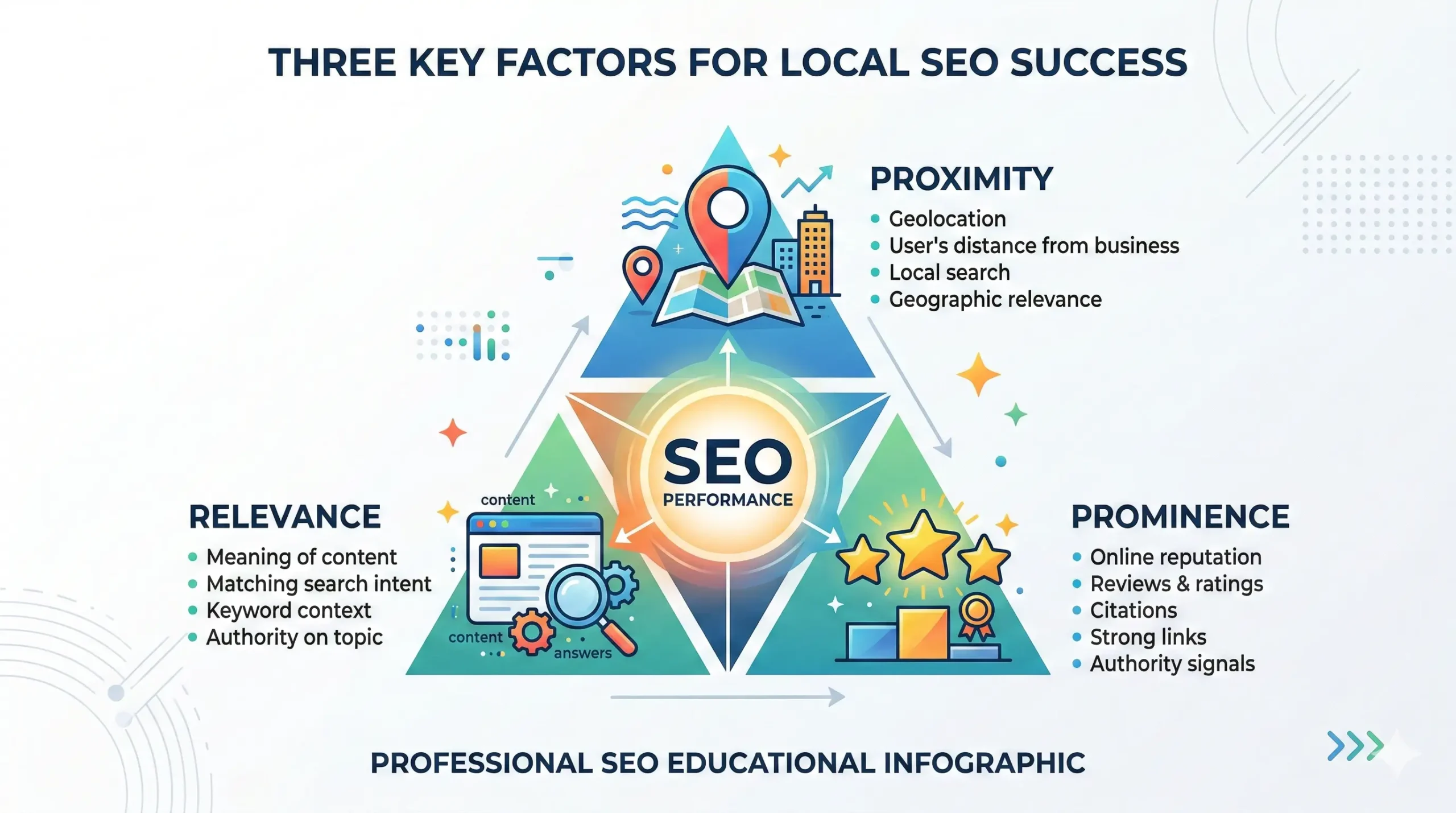 | Prominence | Authority and trust signals | Generate reviews, build citations, earn local links |