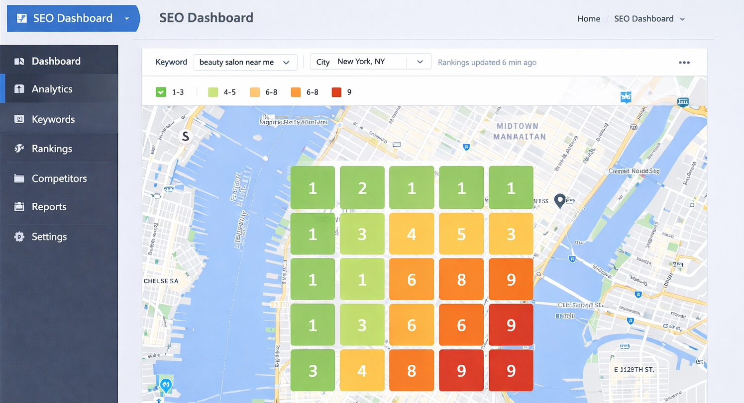 Use local grid tracking tools that measure visibility across different areas within a city. Rankings can vary dramatically even within a few miles.